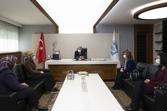Kayseri Büyükşehir Belediye Başkanı Dr. Memduh Büyükkılıç, AK Parti Kadın Kolları Başkanı Emine Timuçin ile birlikte, göreve yeni başlayan Kocasinan ve Melikgazi Kadın Kolları başkanlarını makamında kabul etti.