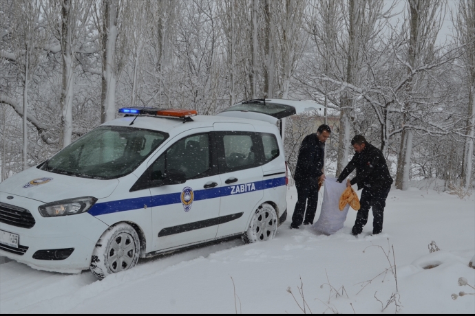 Bünyan Belediyesi Zabıta Müdürlüğü ekipleri, karla kaplı arazide yiyecek bulmakta zorlanan yaban hayvanları için harekete geçti.