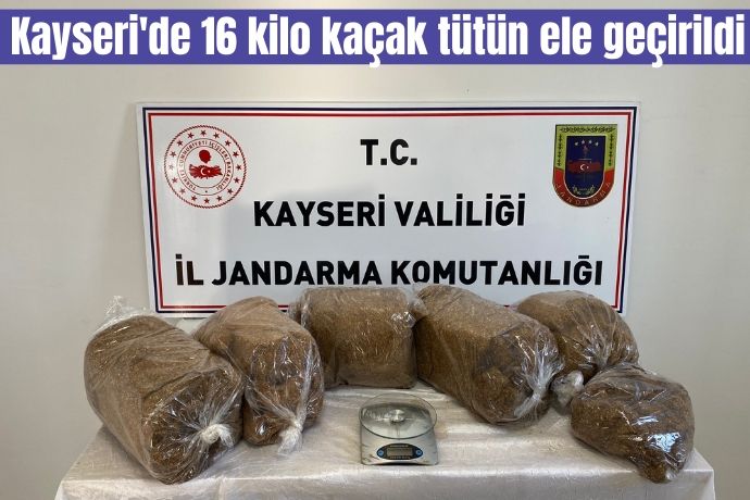 Kayseri İl Jandarma Komutanlığı ekiplerince Sarıoğlan ilçesinde yapılan çalışmalarda 16 kilo 600 gram kaçak tütün ele geçirildi.