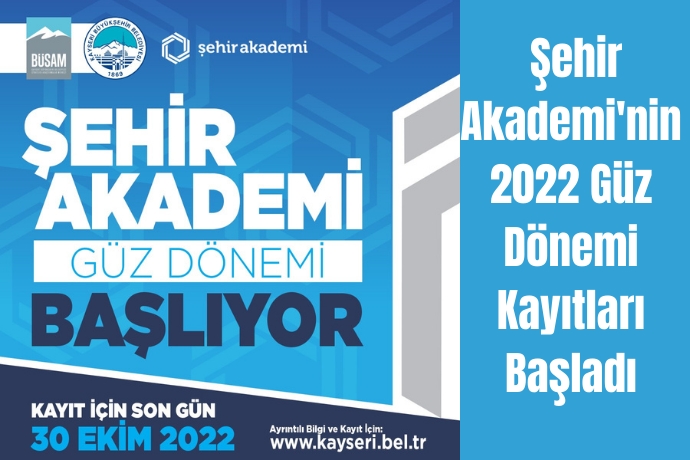 Kayseri Büyükşehir Belediye Başkanı Dr. Memduh Büyükkılıç, şehrin düşünce ve fikir hayatına katkı sunmak amacıyla kurulan BÜSAM bünyesindeki Şehir Akademi’de zengin içeriğe sahip atölyelerle dolu 2022 güz dönemi kayıtlarının başladığını duyurdu.