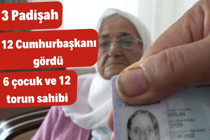 3 padişah ile 12 Cumhurbaşkanı dönemine tanıklık eden 6 çocuk ve 12 torun sahibi Şeker Arslan'ın annesinin de 110 yaşına kadar yaşadığı öğrenildi.