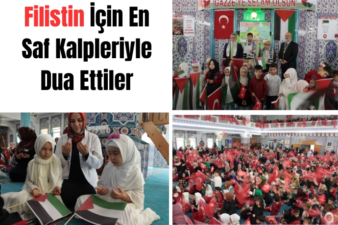 Kayseri’de 4-6 yaş Kur’an kurslarında eğitim gören 2 bin çocuk Filistin’de yaşanan katliamların sona ermesi için dua etti.