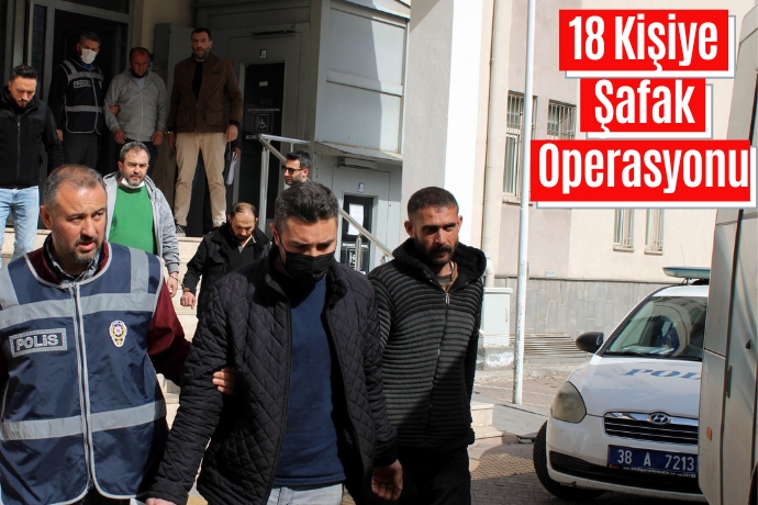 Edinilen bilgiye göre; haklarında hırsızlık ve çeşitli suçlardan yakalama emri ile aranan şahıslara yönelik Asayiş Şube Müdürlüğü Aranan Şahıslar Büro Amirliği tarafından il merkezinde 22 adreste 32 ekip ve 90 personelin katılımı ile eş zamanlı operasyon düzenlendi. Düzenlenen operasyonda hakkında 'Bina içerisinde muhafaza altına alınmış olan eşya hakkında hırsızlık' ve 'konut dokunulmazlığını ihlal etme' suçlarından 10 yıl 10 ay kesinleşmiş hapis cezası bulunan İ.D., hakkında 'Tacir ve şirket yöneticileri ile kooperatif yöneticilerin dolandırıcılığı', 'Bilişim sistemleri veya kredi kurumlarını araç olarak kullanılması suretiyle dolandırıcılık', 'Vergi usul kanununa muhalefet', 'Alkol veya uyuşturucu maddenin etkisi altında araç kullanma' suçlarından 4 adet yakalama emri bulunan ve bu suçlardan 10 yıl 6 ay kesinleşmiş hapis cezası bulunan M.O.S., hakkında 'Cebir tehdit veya hile kullanarak kişiyi hürriyetinden yoksun kılma' suçundan 9 yıl kesinleşmiş hapis cezası bulunan Y.Ö. ile birlikte çeşitli suçlardan yakalama kararı ve kesinleşmiş hapis cezası bulunan toplam 18 kişi yakalanarak gözaltına alındı.