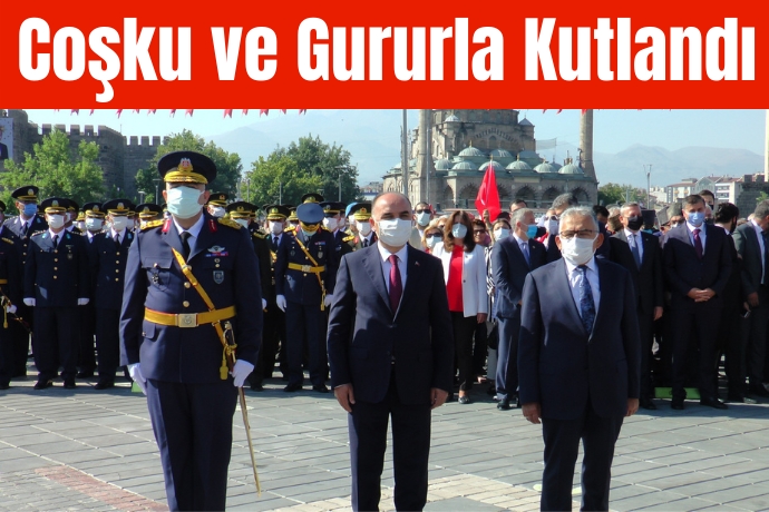 Cumhuriyet Meydanı’nda yapılan törene Kayseri Valisi Şehmus Günaydın, Garnizon Komutanı Aziz Adalı, Büyükşehir Belediye Başkanı Memduh Büyükkılıç, gaziler, protokol üyeleri ve vatandaşlar katıldı. Çelenk sunma töreninin ardından Kayseri Valisi Şehmus Günaydın makamında protokol üyelerinin bayram tebriklerini kabul etti.