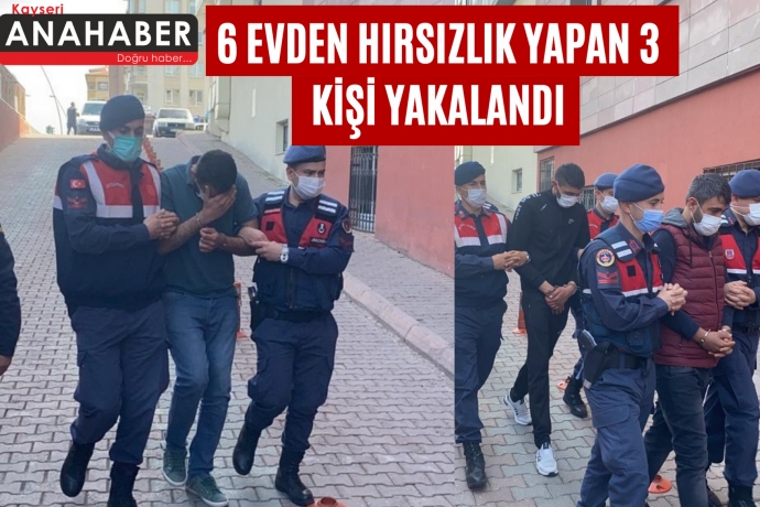 Kayseri’de 6 evden hırsızlık yapan 3 kişi İl Jandarma Komutanlığı ekiplerinin yaptığı çalışma sonrasında yakalandı.