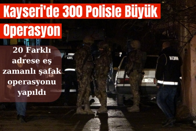 Kayseri İl Emniyet Müdürlüğü Kaçakçılık ve Organize Suçlarla Mücadele Şube Müdürlüğü ile Narkotik Şube Müdürlüğü tarafından düzenlenen şafak operasyonuna 300 polis katıldı. Kocasinan ilçesine bağlı Fevzioğlu Mahallesi'ni ablukaya alan ekipler, 20 farklı adrese eş zamanlı olarak şafak operasyonu düzenledi. Drone destekli ve narkotik dedektör köpeklerinin de katıldığı operasyonda, evler didik didik arandı.
