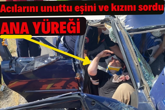 Aksaray'da sürücüsünün direksiyon hakimiyetini kaybettiği otomobilin tıra arkadan çarpması sonucu meydana gelen trafik kazasında araçta sıkışan kadın acılar çekmesine rağmen eşini ve çocuklarını sordu. Yaralı olarak araçtan çıkan kızı ise “Buradayım anne, buradayım” diyerek annesinin başından biran olsun ayrılmadı.