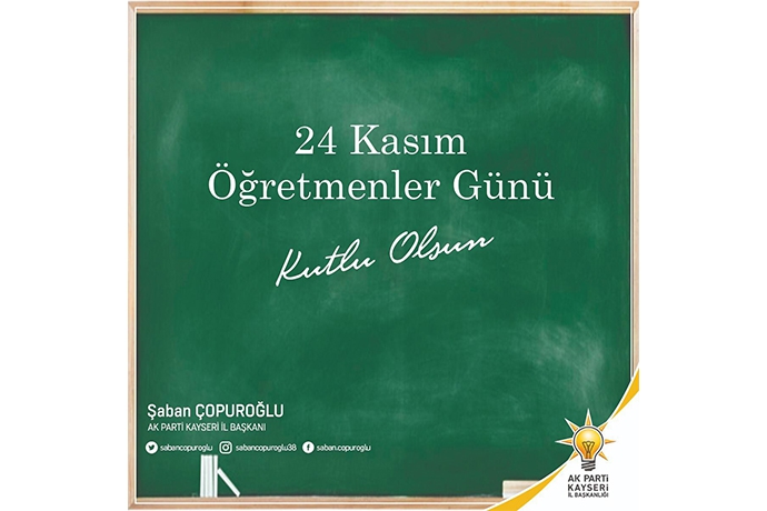 AK Parti Kayseri İl Başkanı Şaban Çopuroğlu, 24 Kasım Öğretmenler günü nedeni ile bir mesaj yayımladı.