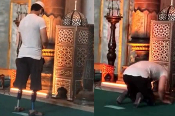 Ayasofya'da Protez Ayaklarıyla Namaz Kılan Genç