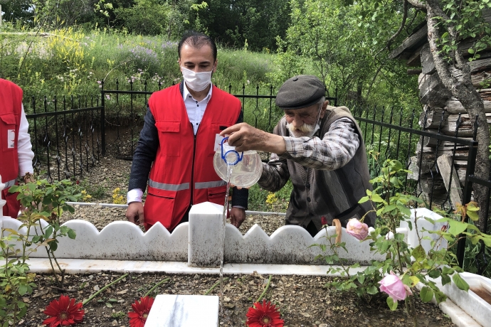 KASTAMONU (İHA) - 29 yıl önce Van’da şehit düşen oğlunun mezarını yalnız bırakmayarak köyden ayrılmayan ve tek başına kalan şehit babasına, Türk Kızılayı ekipleri, Babalar Günü hasebiyle sürpriz yaparak pasta kesti.