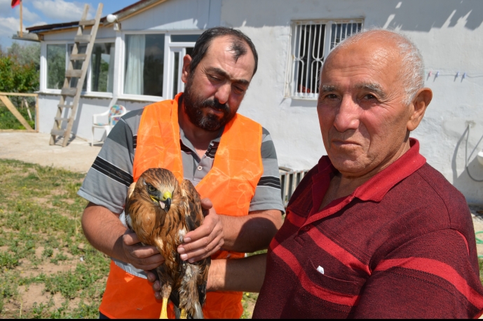 Kayseri’nin Bünyan ilçesine bağlı Büyüktuzhisar mahallesinde Mahalle sakini Mahmut Çelikten yaralı olarak bulduğu şahini Bünyan Belediyesi'ne teslim etti.
