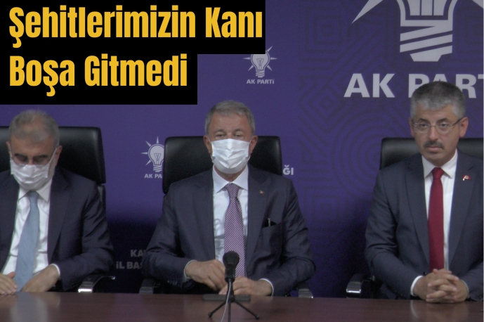 Milli Savunma Bakanı Hulusi Akar, Kayseri’de yaptığı ziyaretlerine AK Parti Kayseri İl Başkanlığında devam etti. Cumhurbaşkanı Recep Tayyip Erdoğan ve 81 il teşkilatının online bayramlaşmasına katılan Bakan Akar, toplantı öncesi yaptığı açıklamasında “Şehitlerimizin kanlarının yerde kalmaması için kararlılıkla mücadelemizi sürdürüyoruz” dedi.