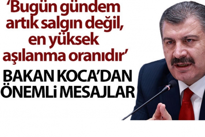 Varyant virüsler ve mutasyonların yakından takip edildiğini vurgulayan Bakan Koca, “Her gün salgın ile ilgili yeni haberler duymaya devam ediyorsunuz. Bilmenizi isterim ki bu durum çok daha uzun sürmeyecek. Yeni varyantlardan, mutasyonlardan haberler gelmeye devam edecek. Bu konunun gündeminizde yer almasına sizleri umutsuzluğa sürüklemesine müsaade etmeyin. Tüm gelişmeleri yakından takip ediyor ve vatandaşımızı en kısa sürede bilgilendirerek tedbirler alıyoruz. Bugün gündem artık salgın değil en yüksek aşılanma oranıdır” açıklamasında bulundu.