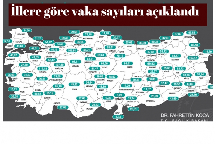 Haritaya göre illerin vaka dağılımı şu şekilde: