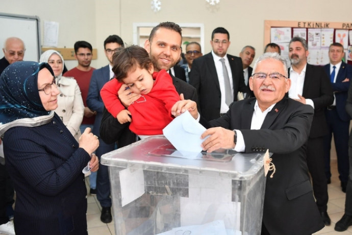 Kayseri Büyükşehir Belediye Başkanı ve Cumhur İttifakı Kayseri Büyükşehir Belediye Başkanı Adayı Dr. Memduh Büyükkılıç, eşi Dr. Necmiye Büyükkılıç ve torunu Kerem ile birlikte Erenköy Mahallesi’ndeki Özkar Eğitim Uygulama Okulu ve İş Eğitim Merkezi’nde sandık başına giderek oyunu kullandı. Başkan Büyükkılıç, “Allah’ın izniyle biz daha yorulmadık, çalışmaya, koşmaya devam diyoruz. Çok şükür huzur ortamında oylarımızı verdik. Allah hayırlı, uğurlu eylesin diyorum“ dedi.