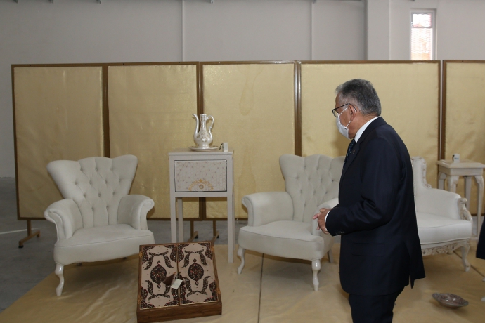 Kayseri Büyükşehir Belediye Başkanı Dr. Memduh Büyükkılıç, Talas Belediye Başkanı Mustafa Yalçın ve Hacılar Belediye Başkanı Bilal Özdoğan ile birlikte atıl kalmış mobilyaların geri dönüşüme kazandırıldığı KAYMEK Sanat Merkezi’nde incelemelerde bulundu.