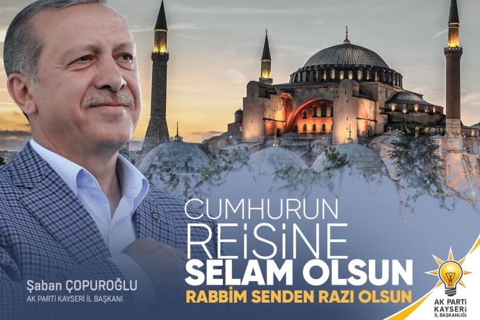 AK Parti Kayseri İl Başkanı Şaban Çopuroğlu, Ayasofya’nın ibadete açılması ile ilgili yaptığı açıklamasında, “86 yıl aradan sonra Ayasofya, cemaatine kavuştu” dedi.
