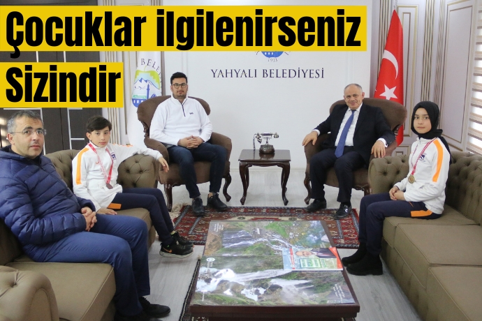 Kayseri Snowboard ve Kuzey Disiplini İl Birinciliği müsabakalarında başarılı sonuçlar alan Yahyalılı kayakçılar Yahyalı Belediye Başkanı Esat Öztürk’ü ziyaret etti.