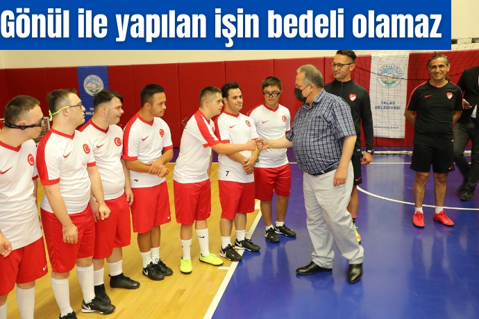 Talas Belediye Başkanı Mustafa Yalçın ve Kayseri Üniversitesi Rektörü Kurtuluş Karamustafa, Down Sendrom Futsal Milli Takımı kampını ziyaret ederek teknik ekiple bir araya geldi ve antrenmanlarını izledi.