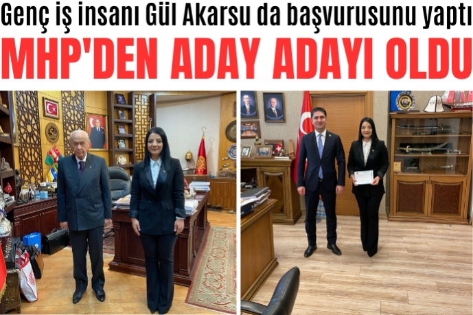 MHP İl Başkanı Adnan İncetoprak'ın yönetiminde bulunan, İl Başkanlığı'nın Sosyal Medyadan Sorumlu İl Başkan Yardımcılığı'nı da yapan genç iş insanı Gül Akarsu da MHP Genel Merkezi'ne giderek aday adaylığı başvurusunda bulundu.