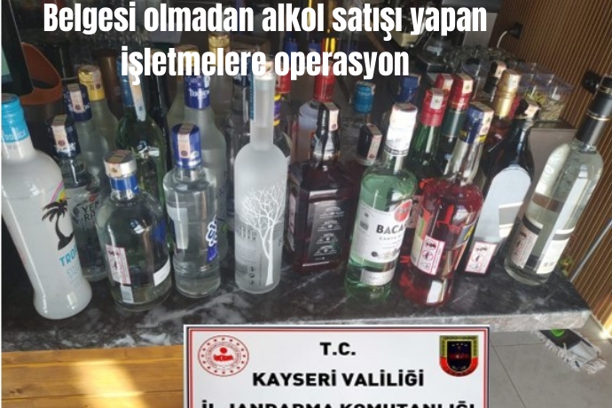Kayseri İl Jandarma Komutanlığı ekiplerince yapılan çalışmalarda; Erciyes Oteller Bölgesinde belgesi olmadan alkol satışı yaptığı belirlenen iki işletmeye operasyon düzenlendi. Düzenlenen operasyonda 858 şişe alkole el konuldu.