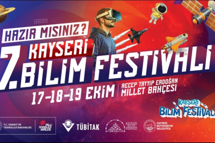 Kayseri Büyükşehir Belediyesi’nin geleneksel hale getirdiği Kayseri Bilim Merkezi organizasyonundaki Bilim Festivali’nin 7’ncisi, 17 Ekim Cuma günü Recep Tayyip Erdoğan Millet Bahçesi’nde başlıyor. Bilim ve teknoloji meraklılarını heyecanlandıracak festivalde çeşitli atölyeler, deneyler ve interaktif etkinliklerin yanı sıra SOLOTÜRK gösteri ekibi nefes kesen gösterilere imza atacak.