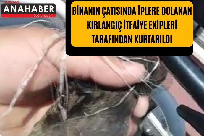 Kayseri’nin Talas ilçesinde 10 katlı bir apartmanın çatısında kanatlarına ip dolanan kırlangıç, itfaiye ekipleri tarafından kurtarıldı.