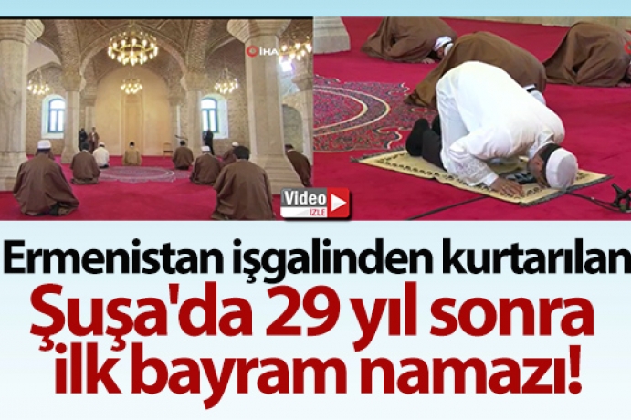 Karabağ'ın incisi Şuşa'da 29 yıl sonra ilk bayram namazı kılındı