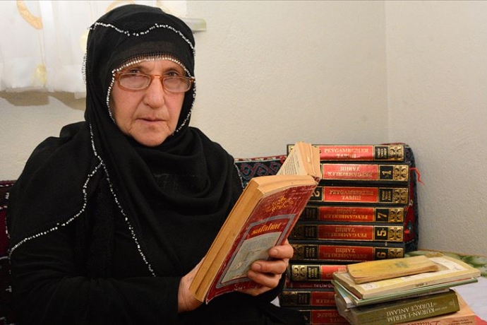 Gümüşhane'de ilkokulun ardından eğitimine devam edemeyen 5 çocuk annesi ve ev kadını 58 yaşındaki Leyla Şahin, yaşadığı köyde ev işleri ve hayvanlarının bakımından kalan zamanını kitap okuyarak değerlendiriyor.