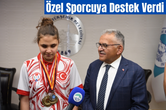 Kayseri Büyükşehir Belediye Başkanı Dr. Memduh Büyükkılıç, küçük yaşına rağmen pek çok başarıyı sığdırarak madalyalar kazanan görme engelli yüzücü Cemre Ateş’i makamında kabul etti. Büyükkılıç, “Maşallah madalya bırakmamış almış” dediği özel sporcu Ateş’i tebrik ederek gereken her türlü desteğin verileceğini söyledi.
