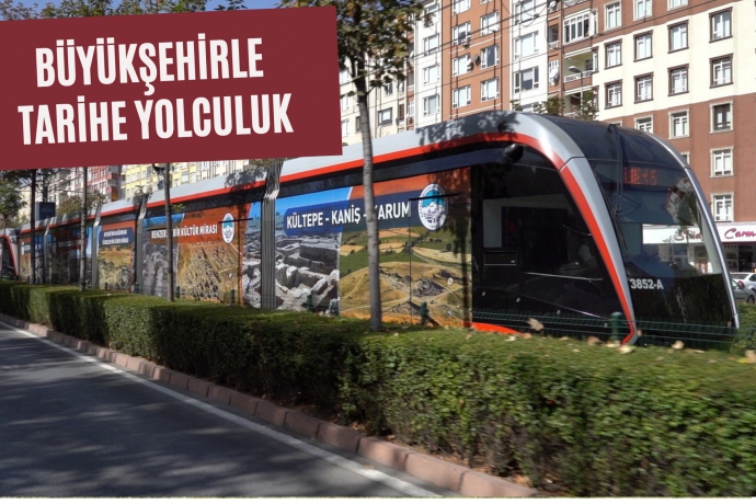 Kayseri’deki tarihi, kültürel ve coğrafi değerlerin tanıtılmasına önem veren Büyükşehir Belediye Başkanı Dr. Memduh Büyükkılıç’ın talimatıyla tramvayla kente ait tarihi ve kültürel değerlerle donatılıyor. İlk etapta UNESCO Dünya Mirası Geçici Listesi’ne giren Koramaz Vadisi ve Kültepe Kaniş- Karum’un fotoğrafları ile donatılan tramvaylar, gün içerisinde kat ettikleri güzergah boyunca vatandaşları tarihi bir yolculuğa da çıkarıyor.
