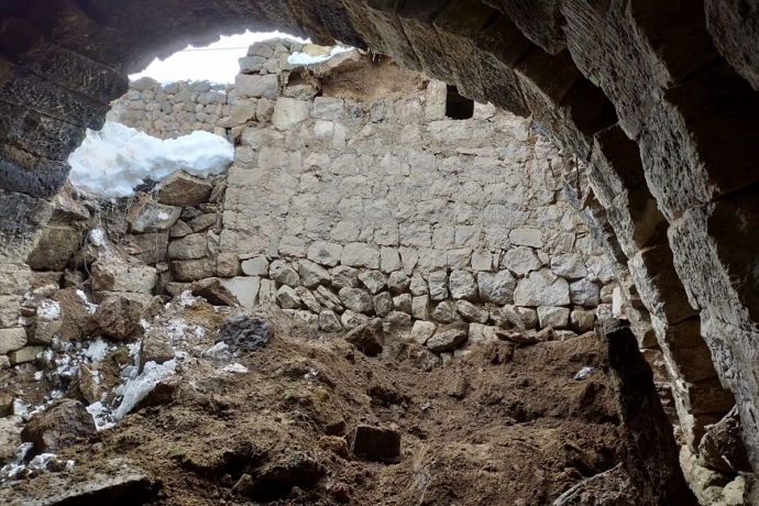 Hamurcu Mahallesi Kümeevler mevkisinde Zübeyir Eraslan’a ait ahırın çatısı yağan karın ağırlığıyla çöktü.