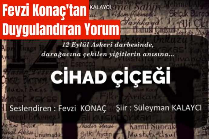 Süleyman Kalaycı'nın 12 Eylül Askeri Darbesi'nde darağacına çekilen yiğitlerin anısına kalemi ile satırlara döktüğü Cihad Çiçeği şiiri, Cihannüma Derneği Kayseri Şube Başkanı Avukat Fevzi Konaç tarafından seslendirildi.