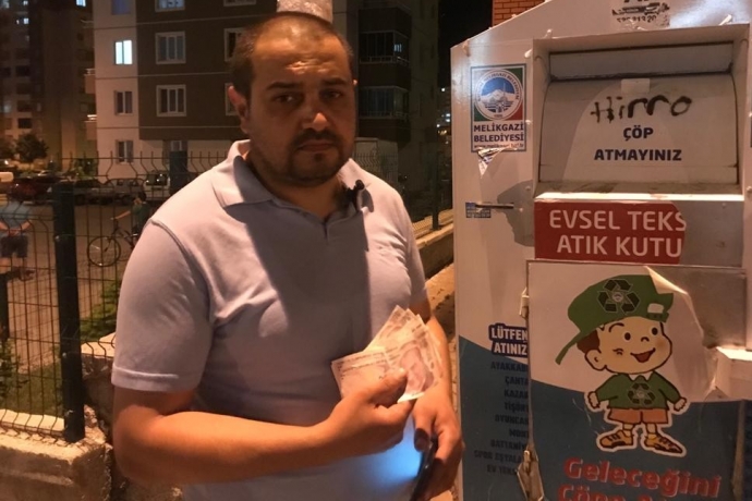 Kayseri’nin Melikgazi ilçesinde yaşayan Fatma Etyemez, annesinin evine giderken çocuklarının eski eşyalarını da geri dönüşüm kutusuna atmak istedi. Annesine vermek için yanına 2 bin TL alan kadın, paraları oğlunun eşofmanının içine koyduğunu unutarak, geri dönüşüm kutusuna attı. Eve gittikten sonra durumu fark eden kadın ve eşinin belediyeye haber vermesiyle, geri dönüşüm kutusunu açan zabıta ekipleri eşyaların arasından paraları bularak teslim etti.