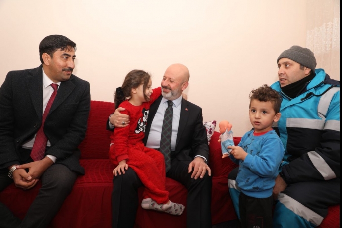 Başkan Çolakbayrakdar, ilk olarak Fevzi Çakmak Mahallesi’nde geçen ay evi yanan Temizlik İşleri Müdürlüğü personeli 40 yaşındaki 4 çocuk babası Bayer Alpay’ı ziyaret etti. Geçmiş olsun dileklerini ileten Başkan Çolakbayrakdar, bu zamana kadar olduğu gibi bundan sonra da her konuda çalışanlarının yanlarında olacaklarını ifade etti. Çocuklarla yakından ilgilenerek Kocasinan Belediyesi’nin ‘Sinan ve Sinem’ çizgi karakterinden oluşan Yap-Boz seti hediye eden Başkan Çolakbayrakdar, “Kocasinan Belediyesi işçi dostu bir belediyedir. Bizler her zaman işçilerimizin yanında olup, bu şehrin huzuruna katkı sunmak ve bu şehrin mutluluğunu artırmak için 7 gün 24 saat prensibiyle çalışıyoruz. Hepimizin ortak kaygısı; Ay yıldızlı bayrağımızın gölgesi altında huzur içerisinde yaşamaktır. Bütün gayretimiz ve çabamız; ülkemizin daha güçlü olması içindir.” diye konuştu. Bayer Alpay ise evinin yandığı gün Başkan Çolakbayrakdar’ın yanlarında olduğunu ve her türlü desteği verdiği için Başkan Çolakbayrakdar’a teşekkür etti.