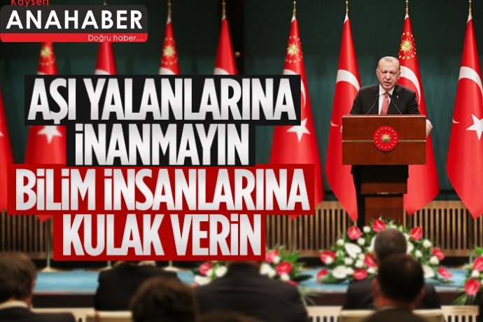 Koronavirüsle mücadele kapsamında alınan yeni kararları açıklayan Cumhurbaşkanı Erdoğan, aşı olmanın önemine vurguda bulundu.