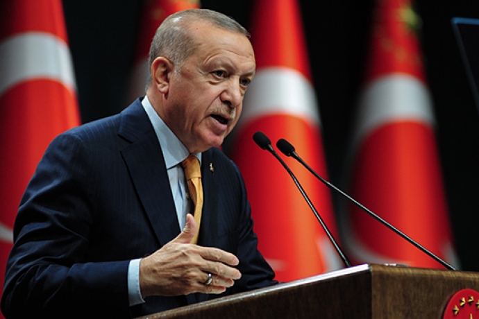 Doğu Akdeniz ile ilgili meselelerin, dünyadaki birçok devletin ve akademik kuruluşun da öncelikli gündemini oluşturduğunu ifade eden Cumhurbaşkanı Erdoğan, “Akdeniz’e kıyısı olsun veya olmasın pek çok ülke, burada meydana gelen olayları yakından takip ediyor, bir şekilde müdahil olmaya çalışıyor. Son yıllarda başta enerji olmak üzere Avrupa, Afrika ve Ortadoğu eksenli tüm tartışmaların odağında Doğu Akdeniz yer alıyor. Kamuoyuna yansıyan kimi bilimsel araştırmalar, bölgedeki çıkarılabilir doğal gaz miktarının 3,5 trilyon ile 10 trilyon metreküp arasında olduğunu ifade etmektedir. Aynı şekilde bölgede 1,5 ila 3,5 milyar varil civarında petrol rezervinin mevcut olduğu hesaplanmaktadır. Ekonomik gücü, konumu ne olursa olsun bölgemizdeki hiçbir ülke, bu potansiyeli görmezden gelemez. Özellikle Türkiye gibi, Akdeniz’in en uzun kıyı şeridine sahip ülkesinin burada yaşanan gelişmeleri tribünden izlemesi mümkün değildir. Biz de hem kendi menfaatlerimizi garanti altına almak, hem de Kuzey Kıbrıs Türk Cumhuriyetindeki kardeşlerimizin haklarını korumak için süreci çok yakından takip ediyoruz. Ülkemizin, Antalya sahillerine hapsetmeyi amaçlayan plan ve haritaları kabul etmeyeceğini açıkça dile getirdik. Tehdit ve şantajlara boyun eğmeyeceğimizi, emperyalist yayılmacılığa izin vermeyeceğimizi muhataplarımıza ifade ettik. Biz kimsenin hakkını, hukukunu gasp etme peşinde değiliz. Biz sadece haklarımızı elimizden almaya çalışan korsan zihniyete karşı dik bir duruş sergiliyoruz. Nitekim geride bıraktığımız birkaç ayda yaşananlar, Türkiye’nin bu konudaki kararlılığının tezahürü olmuştur” açıklamasını yaptı.