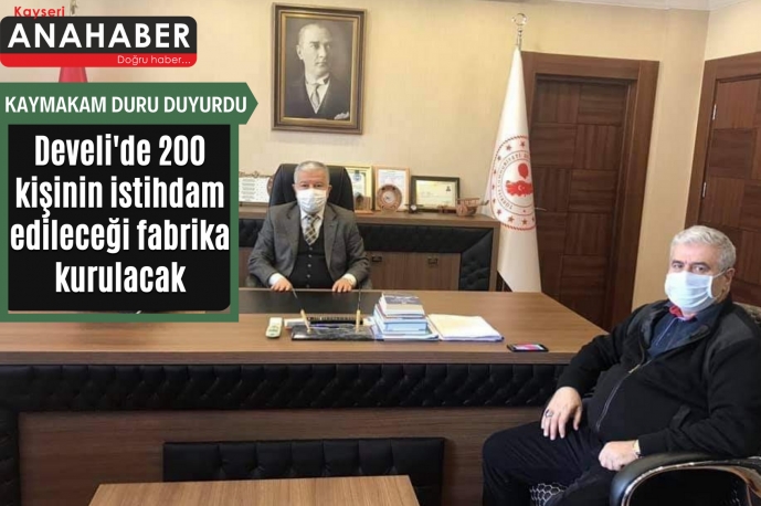 Develi Kaymakamı Murat Duru, tekstil işi ile uğraşan Recep Çolak tarafından ilçeye 200 kişinin istihdam edileceği tekstil fabrikasının kurulacağını duyurdu.