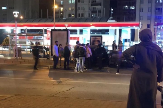 Kayseri’de direksiyon hakimiyetini kaybeden araç sürücüsü tramvay durağına çarptı.