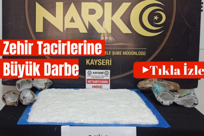 Kayseri İl Emniyet Müdürlüğü Narkotik Suçlarla Mücadele Şubesi ve İstihbarat Şubesi ekiplerinin yaptığı ortak çalışma sonucunda, Ş.V. isimli şahsın doğu illerinden uyuşturucu madde getireceği bilgisine ulaşıldı. Şahsın kullanmış olduğu araç tespit edilerek Malatya yolu uygulama noktasında durduruldu. Araçta yapılan aramada 2 kilo 200 gram metamfetamin maddesi ele geçirildi. Bez torba içine gizlenmiş uyuşturucuyu operasyona katılan narkotik köpeği tespit etti.