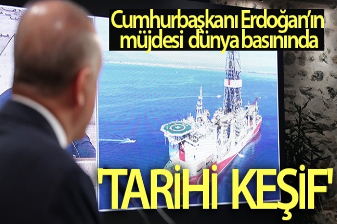 Cumhurbaşkanı Recep Tayyip Erdoğan'ın Karadeniz'de 320 milyar metreküp doğalgaz rezervi bulunduğu müjdesi, dünya basınında son dakika koduyla duyuruldu.