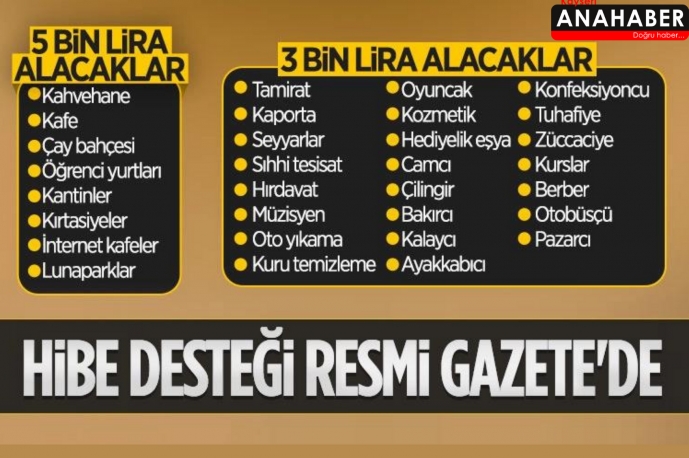 Esnafa verilecek hibe desteği Resmi Gazete'de