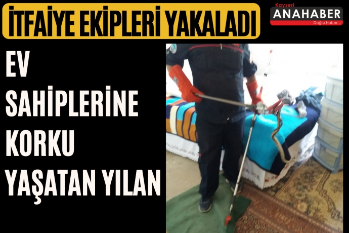 Kayseri'nin Tomarza ilçesinde bir eve giren ve korku dolu anların yaşanmasına neden olan yılan, itfaiye ekipleri tarafından yakalanarak doğal yaşam alanına bırakıldı.