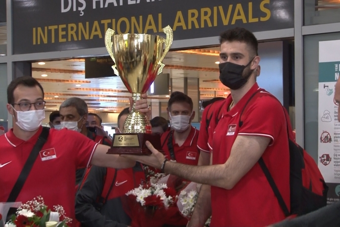 İSTANBUL (İHA) - CEV Avrupa Altın Ligi Finali’nde Ukrayna’yı mağlup ederek şampiyonluk kupasını kaldıran A Milli Voleybol Erkek Takımı İstanbul’a döndü. Bando takımı tarafından müzikler eşliğinde gerçekleşen karşılama sonrası Antrenör Nedim Özbey “Çocuklarım böyle bir karşılamayı hak etti” dedi.