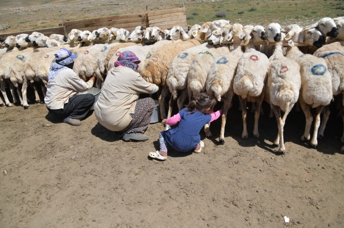 2100 rakımdaki yaylada göçerler yaklaşık bin yıldır devam eden geleneksel ‘koşan’ ismi verilen yöntemle koyun sağım işlemlerini yaparken, İl Tarım ve Orman Müdürlüğü ekipleri de kuzularda küpeleme ve aşılama çalışması yaptı.