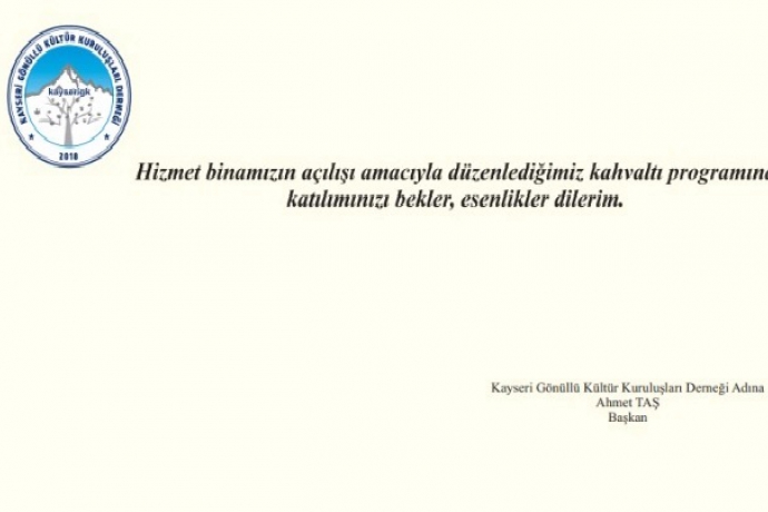 Gönüllü Kültür Teşekkülleri Derneği Kayseri Mahallesindeki Yeni Yerine Taşınıyor.