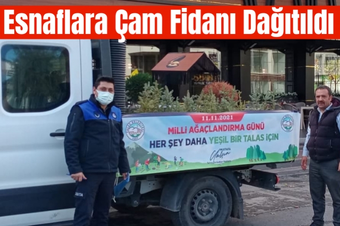 Talas Belediyesi "Milli Ağaçlandırma Günü" nedeniyle ilçe esnafına çam fidanı hediye etti.