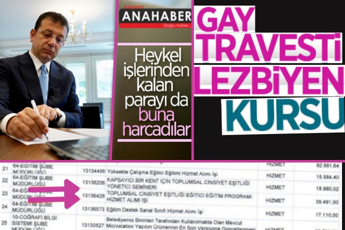 Buna göre İBB kasasından LGBT'lilere yönelik “Toplumsal Cinsiyet Eşitliği Eğitimi” için 58 bin lira çıktı.