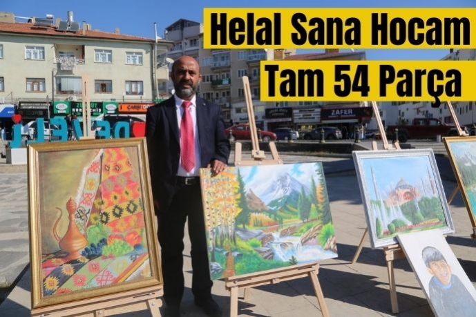 Develi İlçesi Yazıbaşı Mahallesi Camii İmam Hatibi Süleyman Yücel, 54 parçalık resim sergisi açtı.