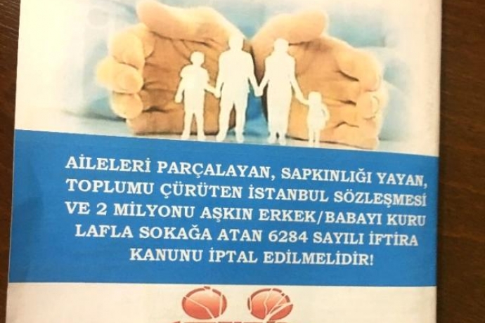Bir dernek tarafından gönderildiği öğrenilen kitapçıkta, İstanbul Sözleşmesi’nin kaldırılmasına destek bildirisi yer alıyor. İstanbul Sözleşmesi’nin milli güvenlik sorunu haline geldiği iddia edilerek, 6284 sayılı kanunun alile hukukundaki sorunların ana kaynağı olarak ifade ediliyor. Kitapçıkta, resimlerle ve grafiklerle açıklama yapılıyor. Aile Koruma Kanunu eleştirilerek, feminizm ana hatlarıyla anlatılıyor ve İstanbul Sözleşmesi’nin neden iptal edilmesi gerektiği anlatılıyor.